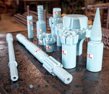 The company produces handheld drilling consumables such as tapered drill steel, reaming drill steel, socket bits, and carbide inserts used for manual drilling operations in underground mining.